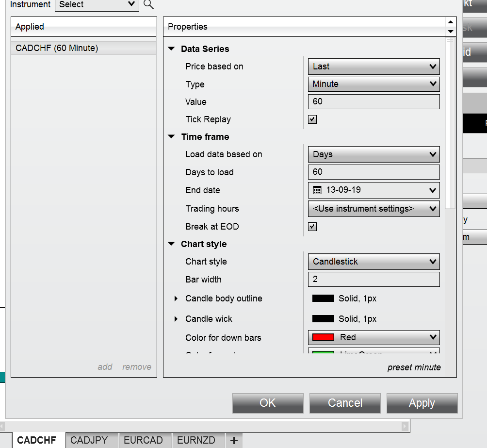Ex CADCHF Chart (Days to Load 60) but in the chart chowing only 05 Days