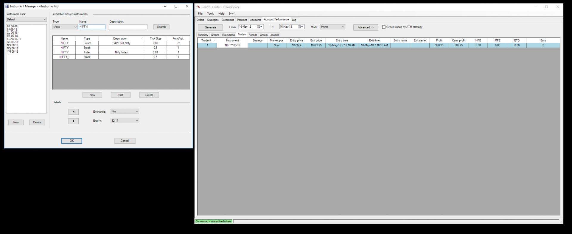 I tried to connect to IB TWS and NT7. I was able to see to the trade taken. How can set up the instrument to open a new chart. The chart image is from the trade window , where I right click to see the chart. But I guess I have to setup something in the instrument manager.