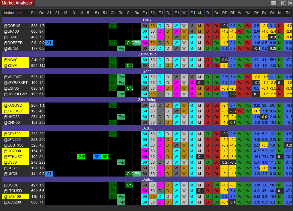 I use FXCM Demo feed which is free with Ninjatrader as it allows you to chart all their CFD and Forex instruments with Ninjatrader. You need to add the "@" symbol before the CFD name. (Forex does not require the "@" symbol - like AUDUSD) Attached is a screenshot of my Market Analyser window showing the FXCM CFDs