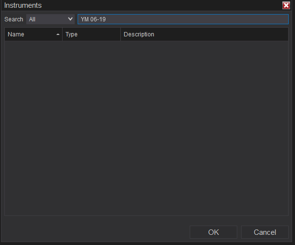 • Type the symbol and expiry into the Symbol search window such as YM 06-19