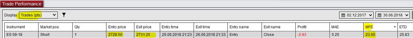 Reality: small winner, MAE during trade was 2 points ( = 8 ticks)