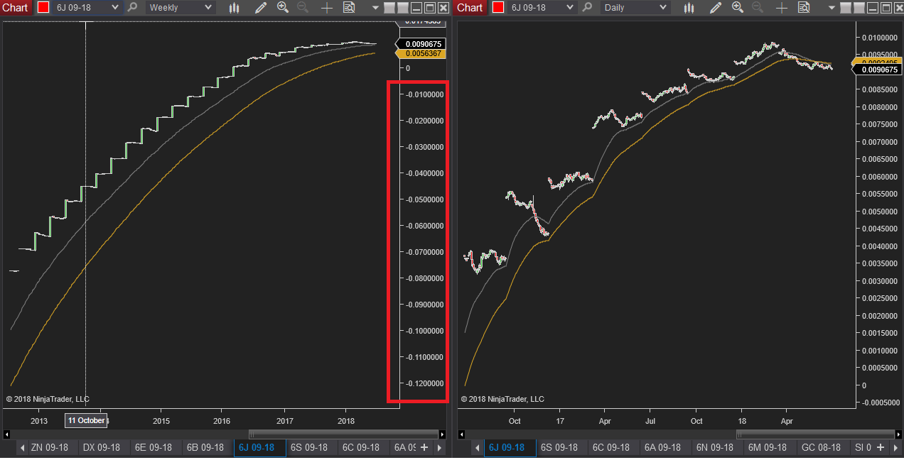 Something very strange has happened to to some of my charts, and I cant put my finger on the root cause. I can see the isuse most clearly in 6J, 6M, 6E, 6B, ZT, ZF, but its possible other symbols are affected too, but now i see it only affecting US Bond Futures and FX futures > my weekly/daily charts dont look anything like they did a few days ago, some just look wrong.