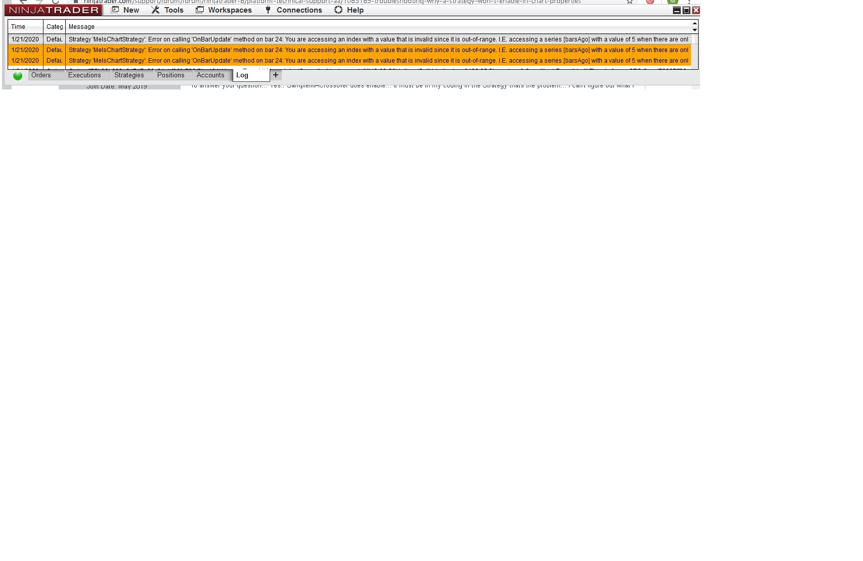 I have a new Strategy I created that wont enable... Attached is an image from the log tab showing the error.. I could use some direction to find the problem and correct it... Please..