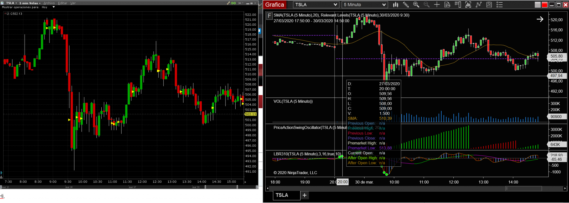 I'm using NT8 with IB datafeed. I'm using same timezone in my computer, NT8 and TWS (Eastern Standard Time (EST), UTC -5). I'm using in NT8 US Equity ETH trading hours template.