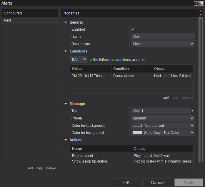 I have set a simple chart alert where price needs to close above a horizontal line.