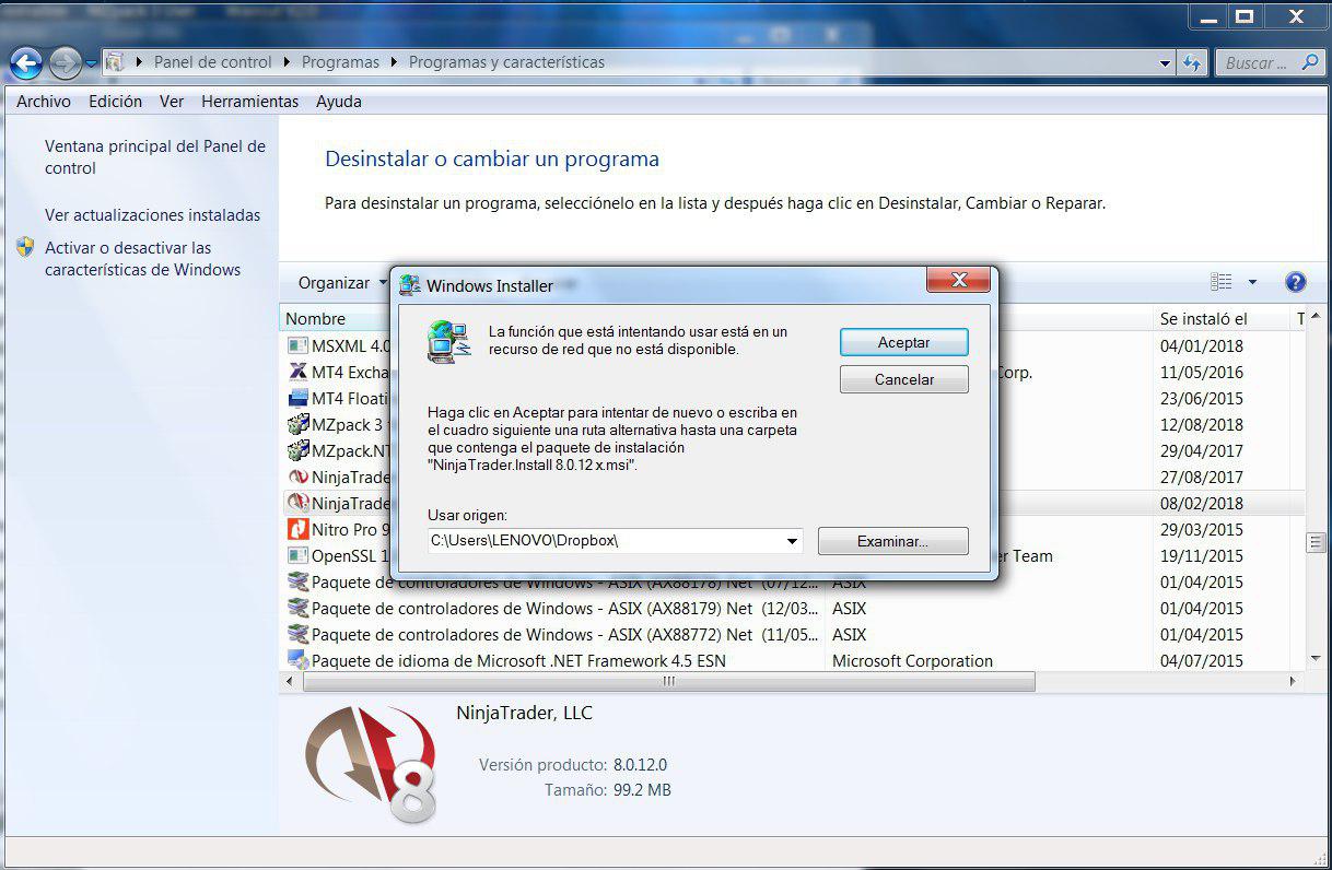 NT8 He instalado no funciona correctamente y quiero volver a instalarlo,