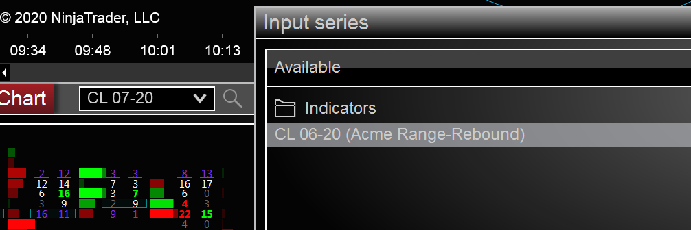 So this started when I went to roll to the CL 07-20 contract last Friday. I was hoping it would rectify itself over the weekend somehow... no luck. Basically there are some charts that are not referencing the data they say they are, or that I am directing them to. See attached screenshots where the instrument selected in the chart window says 'CL 07-20' but then the indicator data selector shows the only available data series is the 'CL 06-20' contract. The second screenshot reflects this again where the price in the chart trader side bar reflects the 07-20 contract, but you can clearly see the price printing in the chart window just to the left is not the same price, and is the 06-20 contract.