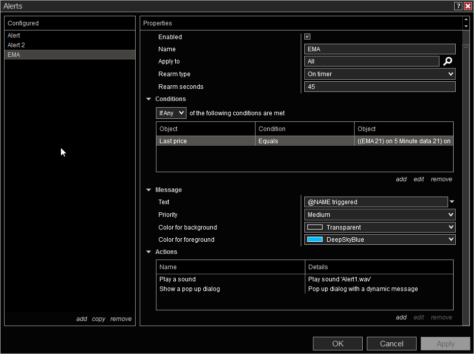 Trying to program a simple alert to activate should price be within 2 pips of EMA. Attached are pictures of the alert however it is not working.