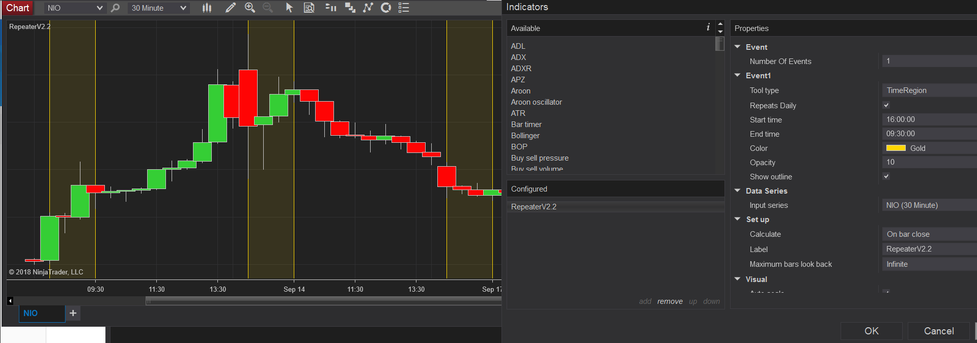Originally posted by NinjaTrader_CodyD View PostWhile there is no specific different setting to indicate the ETH values, you can add a second data series and have one assigned to each RTH and ETH. This will allow you to assign separate colors to the RTH hours and make them easily distinguishable.