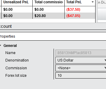 the second line is my live account showing the commission inaccuracy