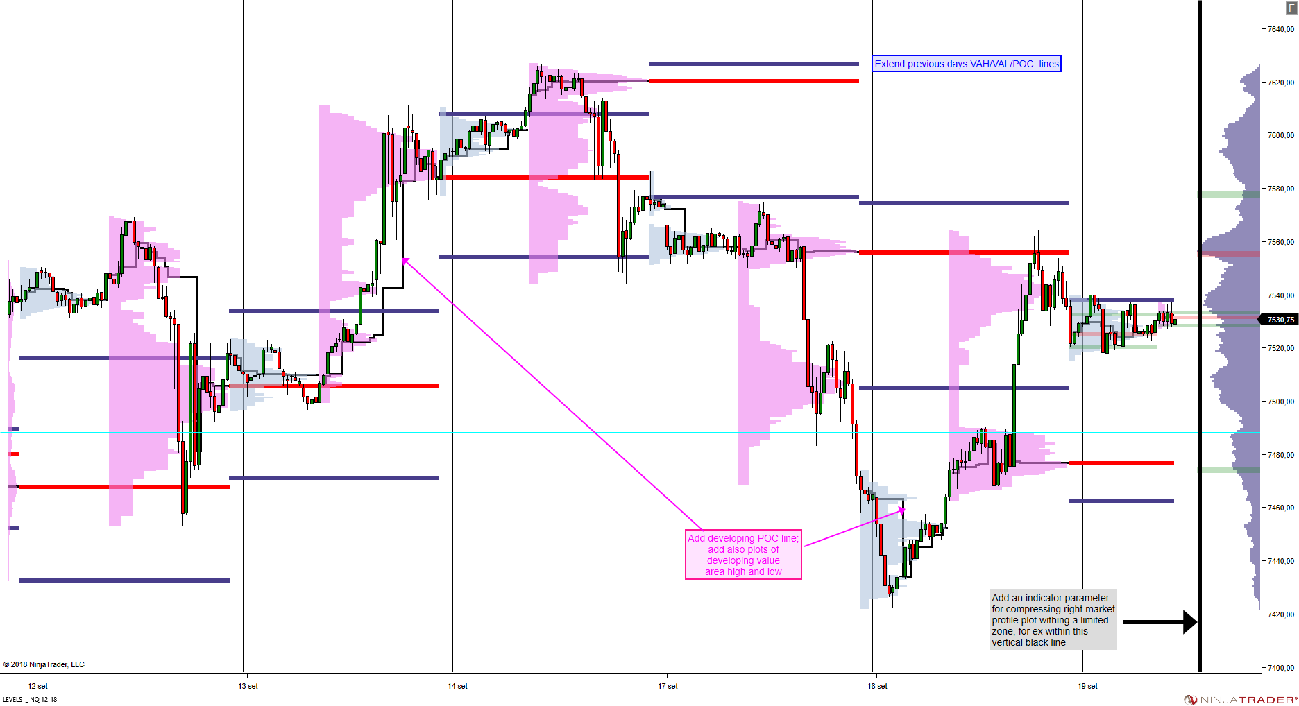 3. allow to select from the indicator properties panel how far to extend to the left a multiday market profile plotted on the right hand side of the chart.
