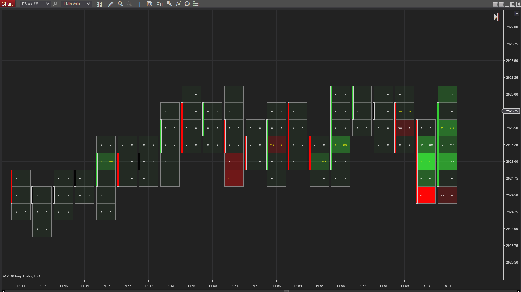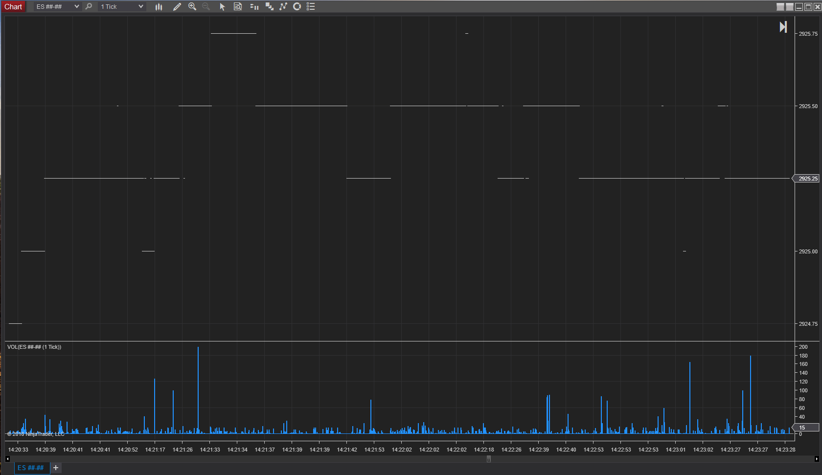 Ok, Thanks Shawn. I appreciate you detailing this out. I want to make sure im seeing everything correct. I believe my clock is correct on NT/Computer, im on central time so 15:00 pm was the close. Attached are two snapshots of the NT chart and IRT chart using the 1 tick chart with volume down below. I used the time period from 14:20 to 14:24 yesterday to highlight the trades since the close was way too busy to align. I noticed that IRT is showing at least 15 bars over 100 and NT shows maybe 5. Would you know why this is?