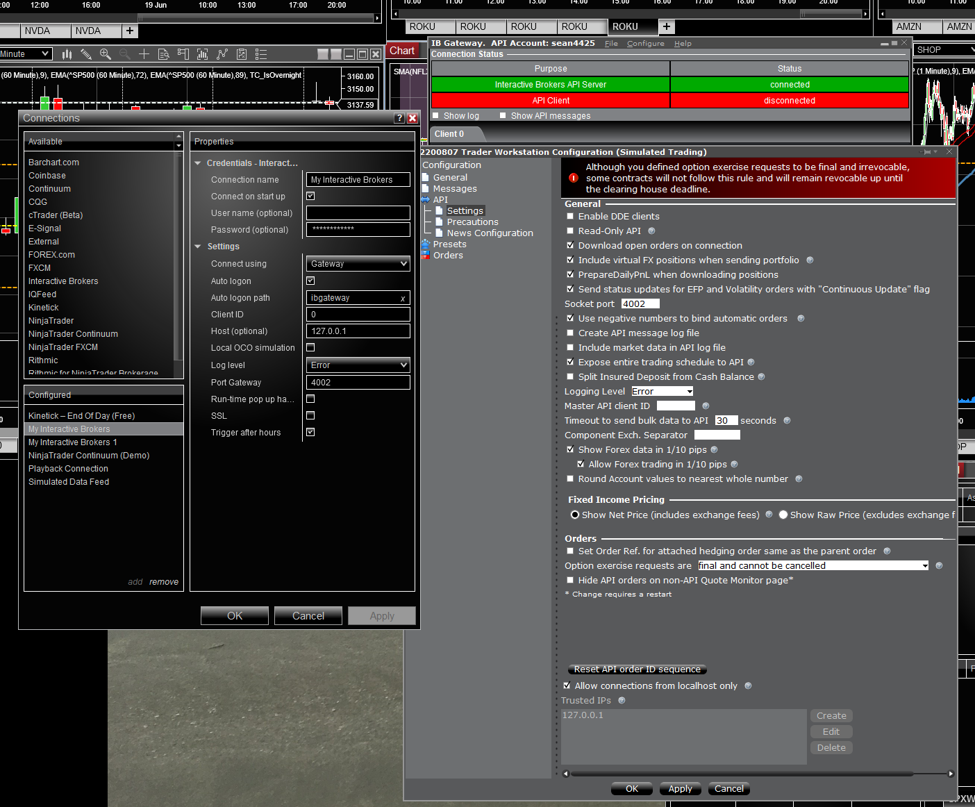 its very weird i dont get it, why is there no chart data coming through now that im connected?? i changed the socket port back to 4001 and im can connect as the last pic shows, but 0 data coming in, charts are blank. please advise. cheers