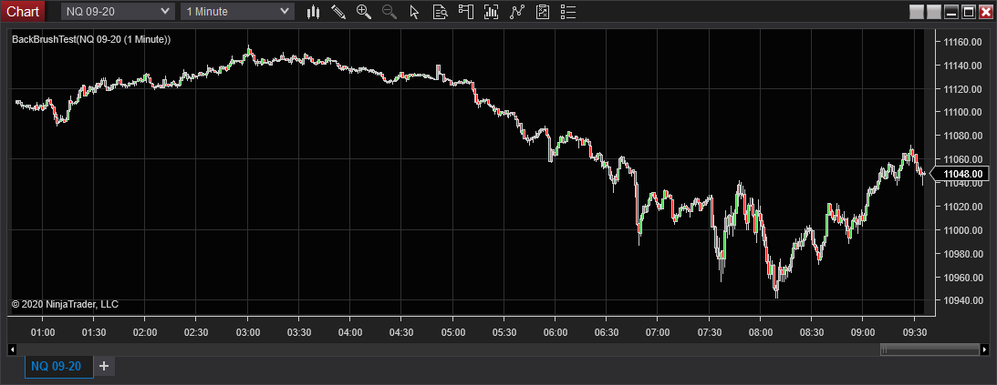 I have attached a simple test script that sets BackBrush to Brushes.Black and I have also attached a screenshot of my results. Please test in a new NQ 09-20 chart ensuring no templates are used and no additional indicators or other NinjaScripts are added. Note that the last bar is not colored if the script is enabled with Calculate.OnBarClose.