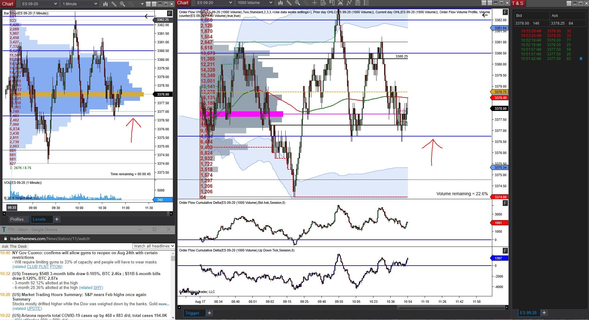 On the left, this volume profile was drawn as a drawing tool, and then the start time was set to 8:30am (central), which is the open of RTH.
