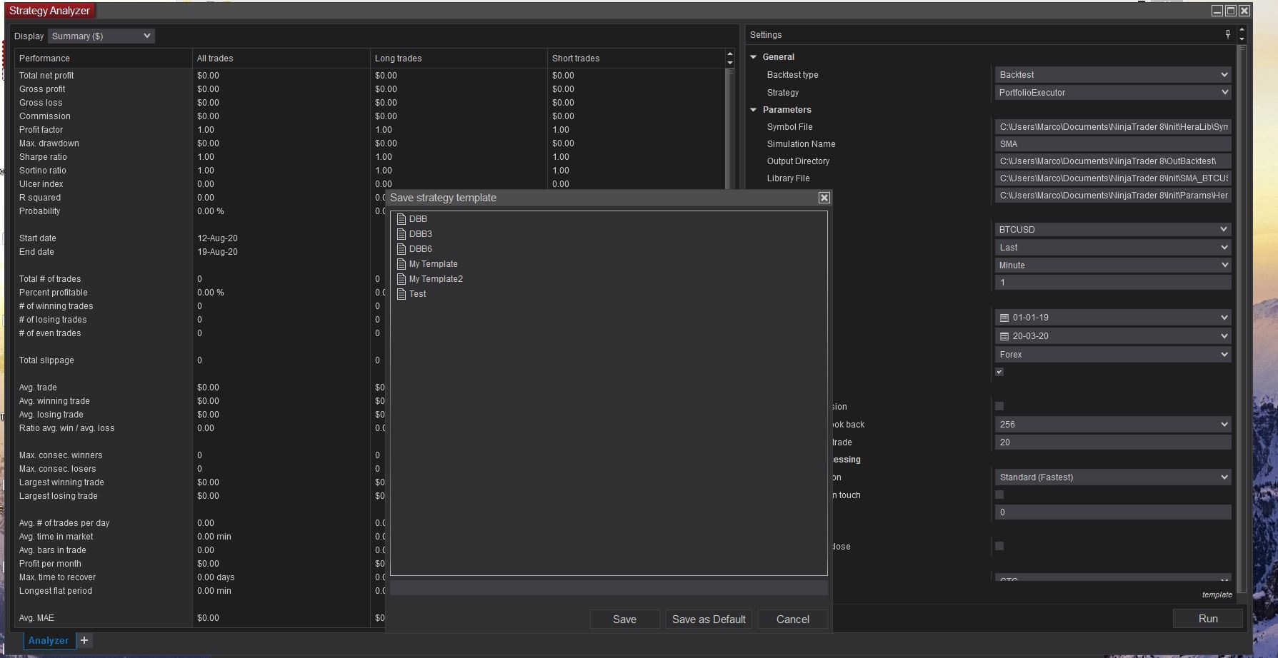 On paper, it looks to be easy enough to do as in the setting template from Strategy Analyzer you simply go to "Template > Save" and then type a name for the configuration (same as fig. setting1.jpg).