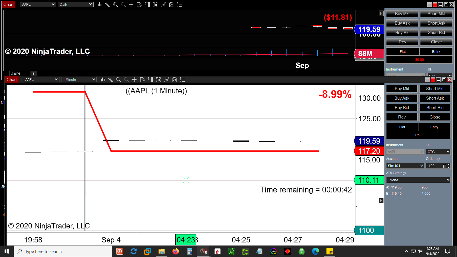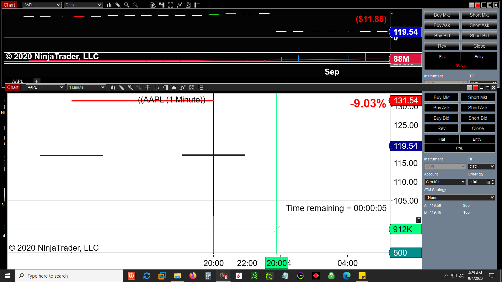 While NT support was very helpful and timely, I'm really not happy that TDA and NT don't work more glitch free together. I checked my account at TDA and I'm signed up for and am receiving all available real time data feeds, so somebody should be on the hook here for resolving this... And I'm still waiting for the "feature request" to materialize where the last 1 min. candle volume fills to capacity in real time and not delayed. How can you trade a volume breakout with no accurate volume info Might as well be trading on a feed delayed demo account in that regard.