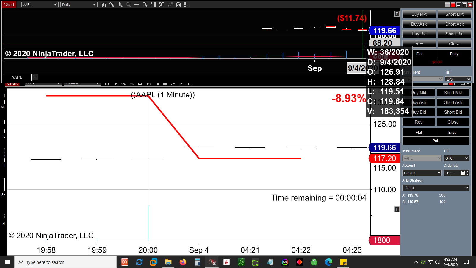 2nd edit: It's now 6:09am and the daily candles from all tickers have reverted back to 9/3/2020. Daily candle prices are therefore no longer synced up with 1 min. chart prices since there's no daily candle for today to sync up with.