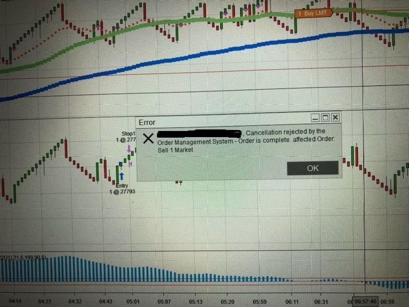 Error: Cancellation rejected by the order Management system- Order is complete.affected order Sell 1 Market.