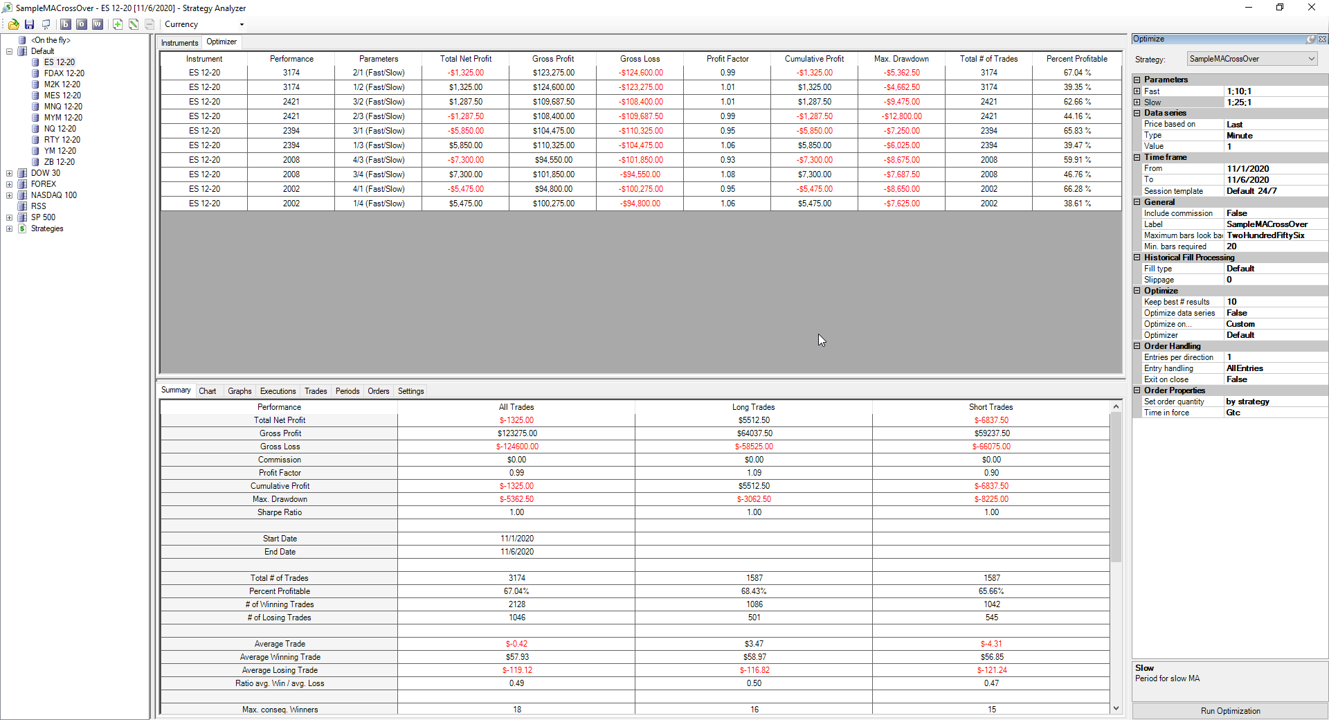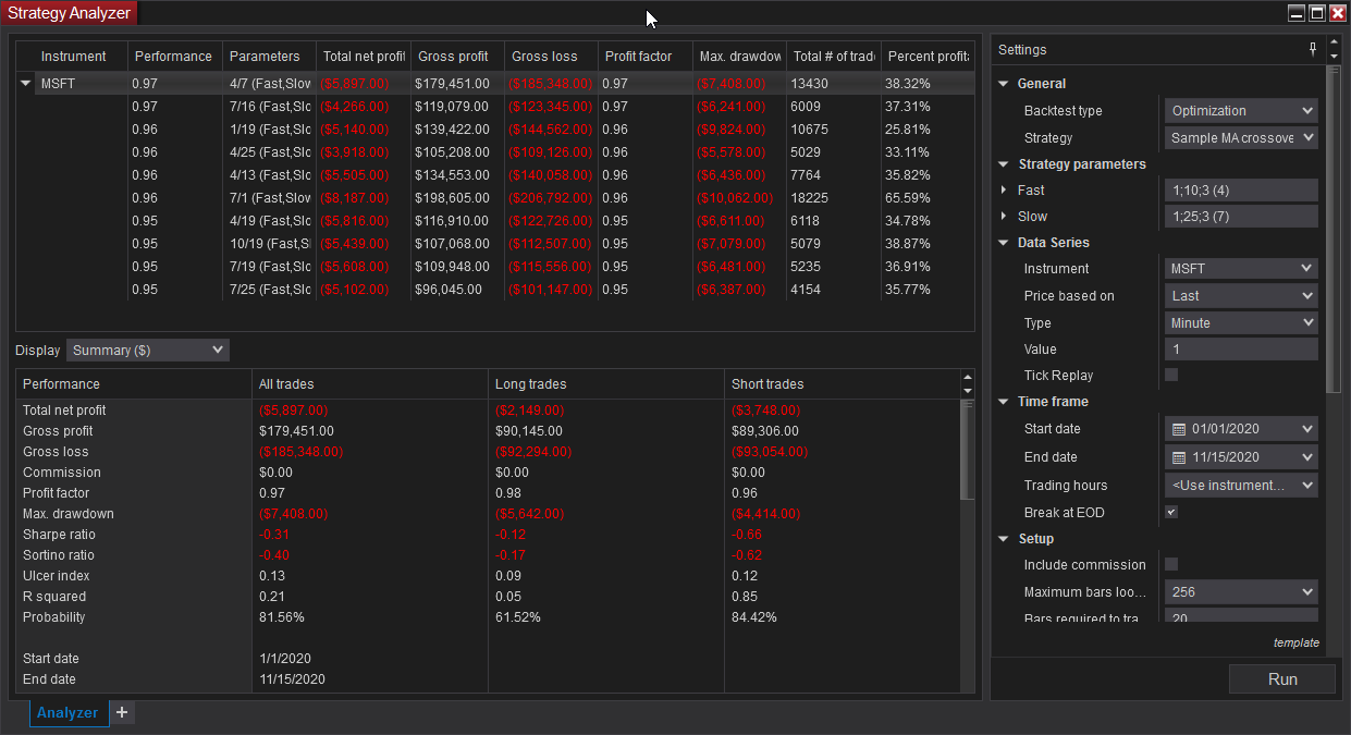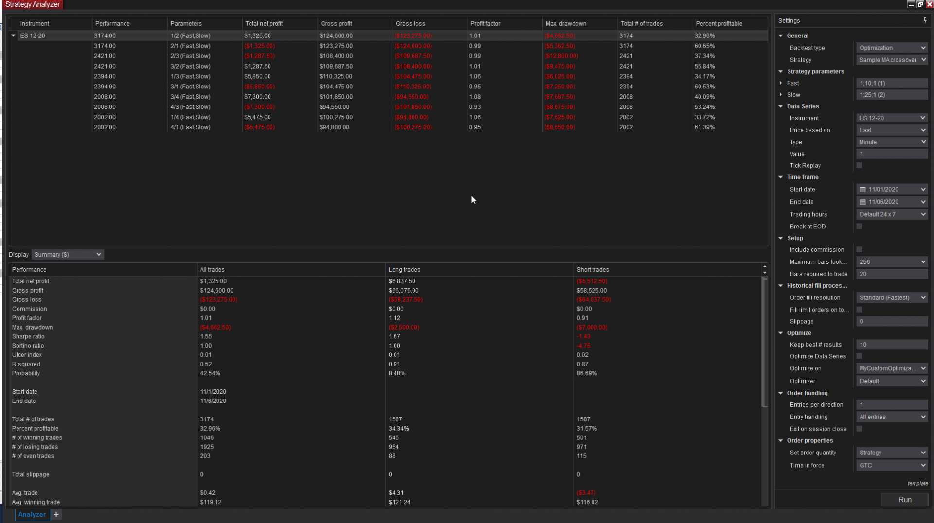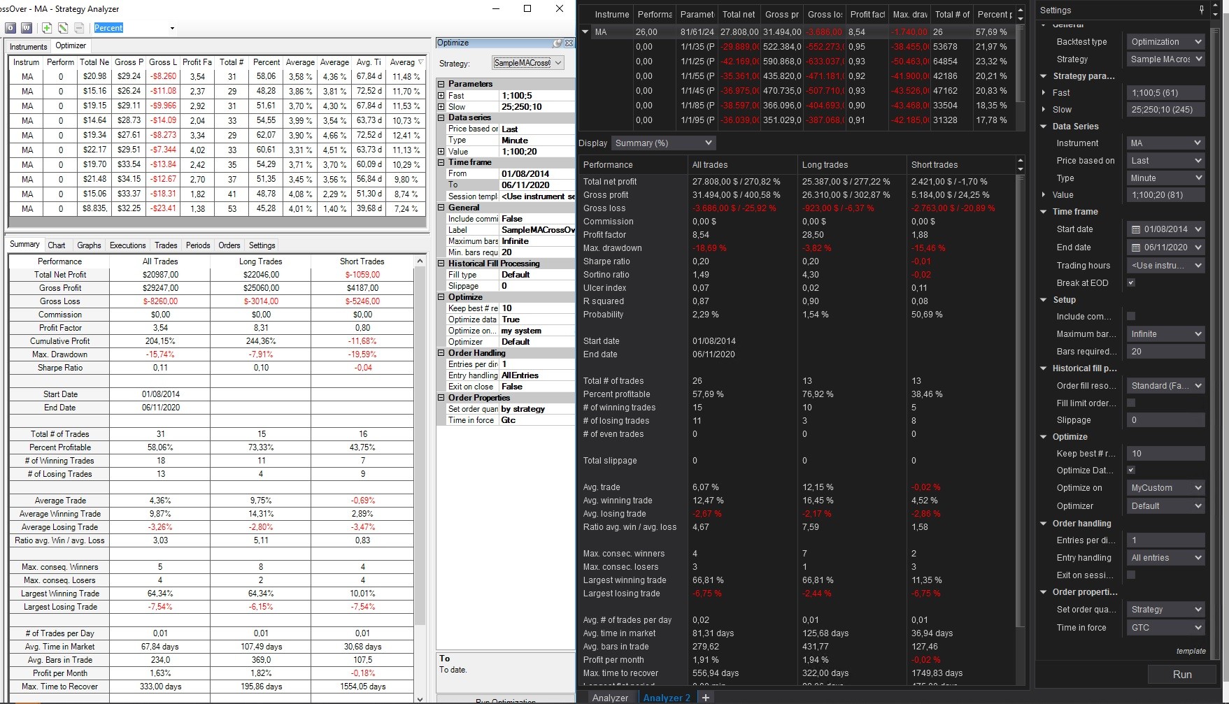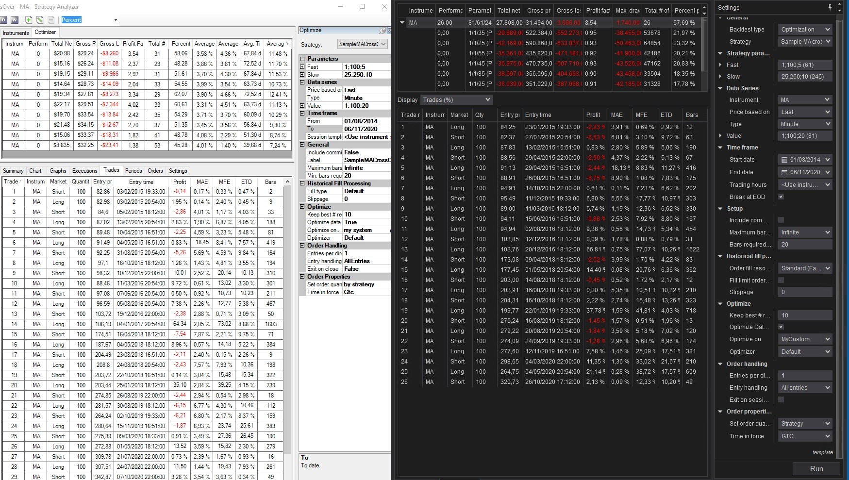 This code structure in NT7 gets all the results with 2 trades or more that have a profit factor bigger than 80. I it gets these conditions the GO displays the result. If not the result is zero. I am interested in the results that offer more trades.