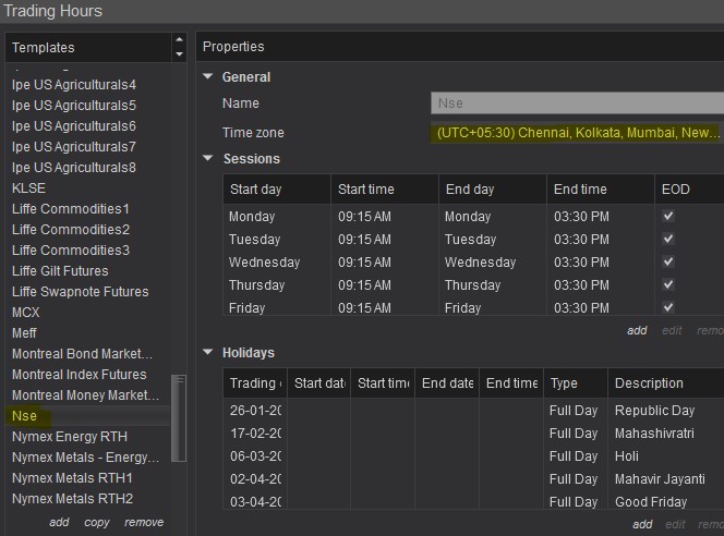 My Timezone is (UTC+05:30) Chennai, Kolkata, Mumbai, New Delhi and same has been selected under Tools > Options > Time zone. I am using NSE data for creating data series. (Trading time is from 9:15 AM to 3:30 PM) . Please find attached the screenshot for the same. Also attaching the Dataseries settings for your reference.