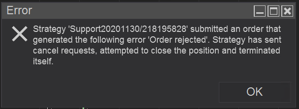 Hi, please find attached a basic strategy that generates the error. And the two errors when run at Max Speed on 8.0.23.1.