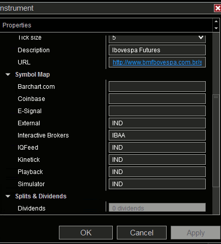 In the NT instrument settings I had to change the IND mapping symbol to IBAA so that I could match with IBrokers.