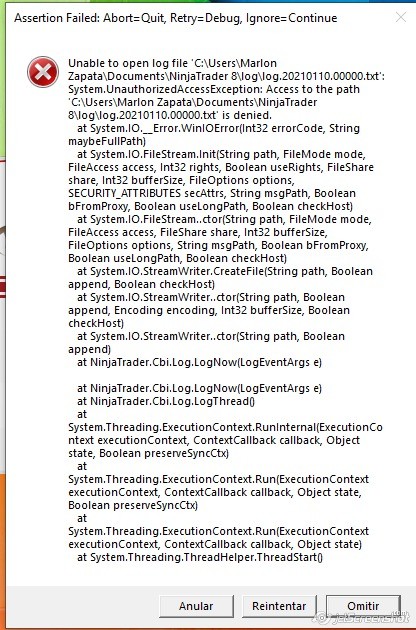 The error you are seeing is due to a firewall/antivirus/Backup program on your PC. Please add the NinjaTrader 8 folder as an exception to all of the programs of this type you may have on your PC.