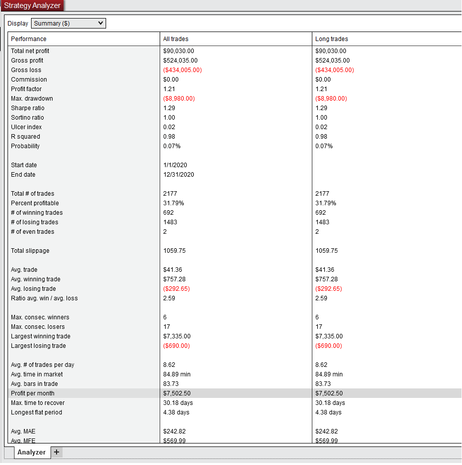 Picture of summary screen attached and these are the monthly max drawdown numbers from the analysis screen of the pictured results.