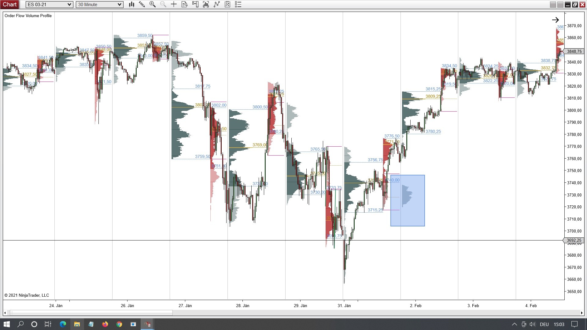 I have set a tradinghours template from 17:00-9:00 for having the volumeprofile for overnight hours. But the result is strange. EG with the 2 rectangles I marked where the profile is plotting but there was no bar in the overnight hours from 17:00-9:00.