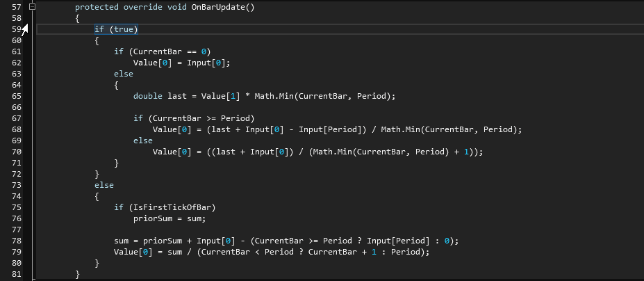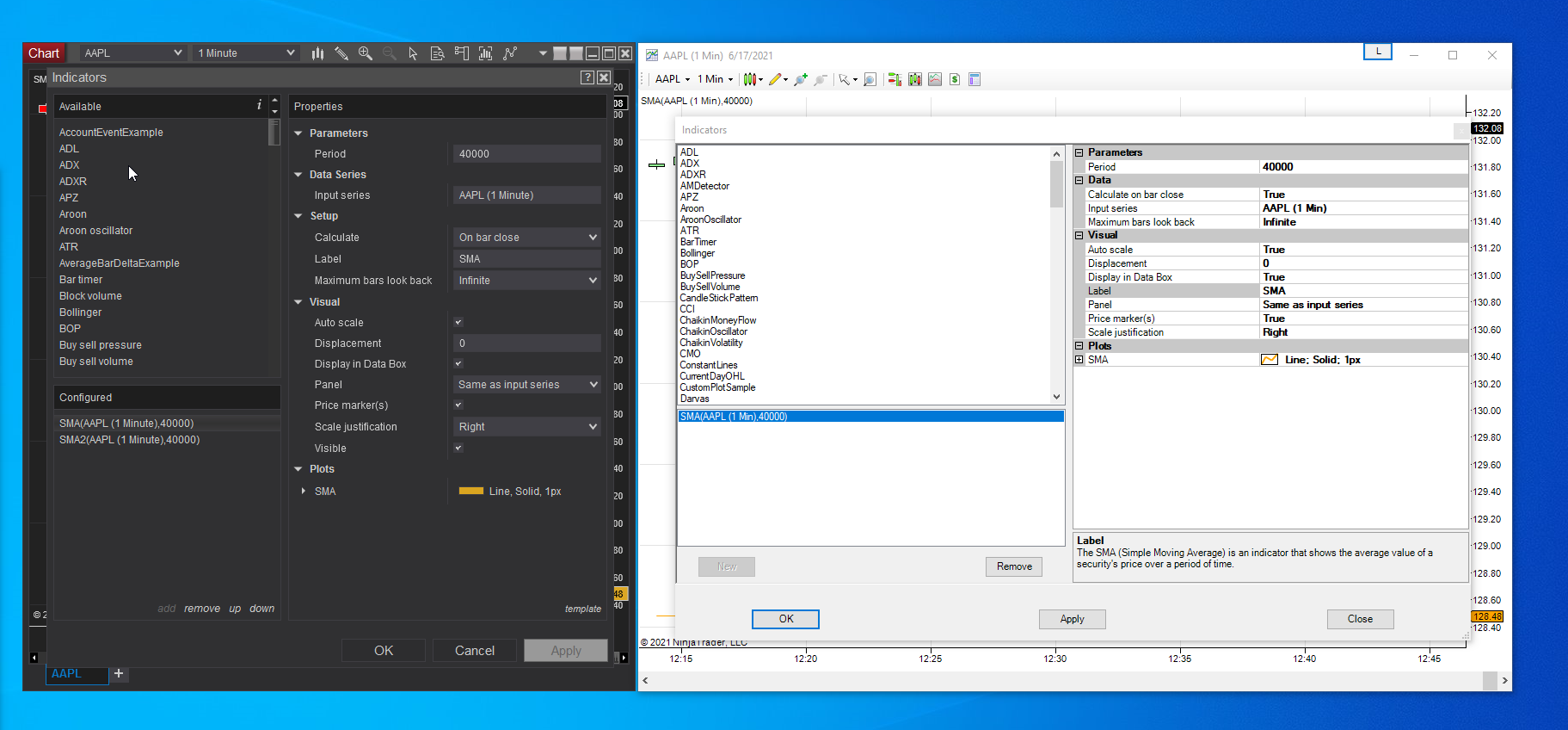 I get diff results regardless of whether I use the Indicator setup wizard or code up the moving averages myself. I specifically checked and both programs use the closing price of the bar, which is usually the default for most charting programs I've examined and is what I want, so good there.