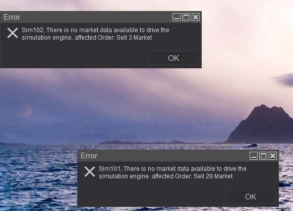 I'm getting error "There is no marke data available to drive the simulation engine." I am connected to my data source, and I do have strategies loaded, but not enabled. I thought this was a connection issue, but appears to be something else. Your thoughts? Thanks,Tags: None