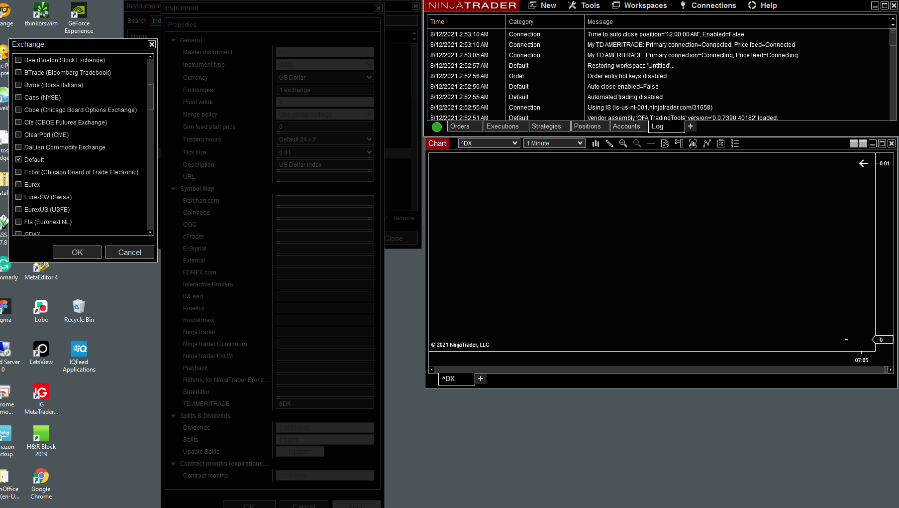 3 exchanges are enables as per suggestion, "I suggest to try $DXY as symbol map in combination with the following 3 exchanges: Default, Nybot and Ice (Intercontinental Exchange)."