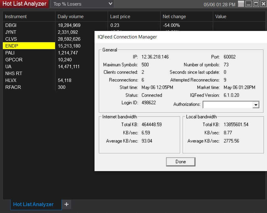 Again, just for clarity, the list won't cancel its data feed subscriptions when you close the window, change lists, etc, until you either close the connection or restart ninjatrader.