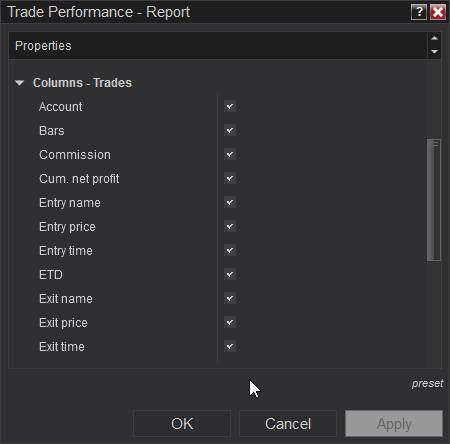 The trade performance>trades sheet shows the pnl for each trade. However, how can I add the execution time to the sheet so that I know what time the trade was actioned together with the corresponding pnl?