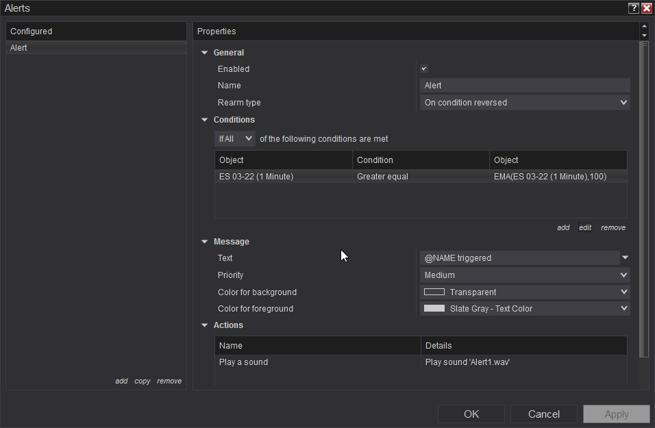 How can I set up an alert so that NT8 emits a sound every time the price reaches 15 points above or below the EMA? I've experimented with several different configurations, but have failed to make it operate the way I want it.