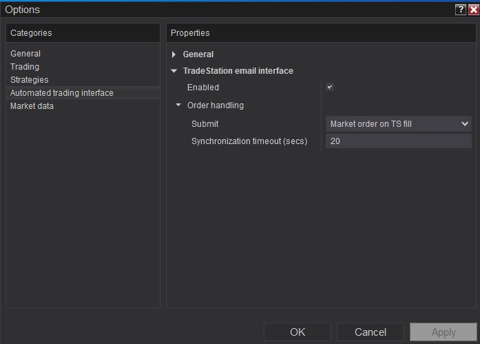 I was trying to connect TradeStation to NinjaTrader with a demo account, but does this mean that we are not connected, but using an email interface?