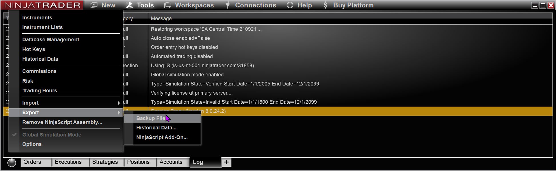 I want to run BackTest on my Ninja Trader and would like to have the identical environment as my colleague, i.e. the Workspace, the Historical Data, etc.