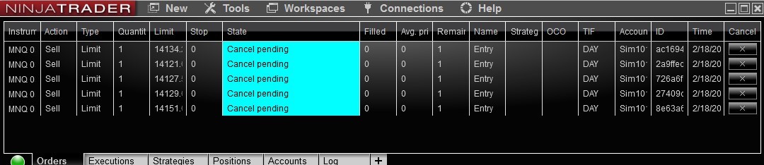 Sim101 account are with cancel pending orders, even I restart Ninjatrader