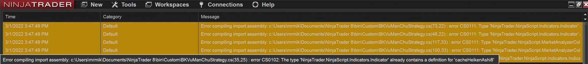errors importing ninjascript strategy