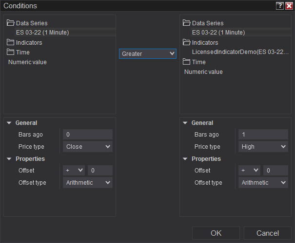 I am new to NT8. I want to know if there's any indicator or any way, in which I can get an alert when a previous candlestick hi lo close is breached? Thanks.