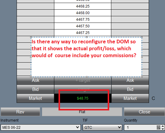 The first change you would make is to right-click on the SuperDOM window > Properties > General- Show realized PnL when flat > Check this box > Click OK