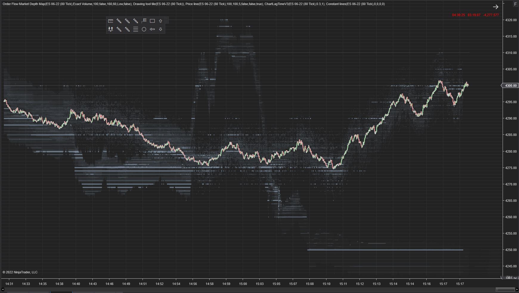 The second picture where the chart is showing a price near 4300 I took a picture of T&S at the same time and also uploaded the picture. The price in T&S is showing 4252.