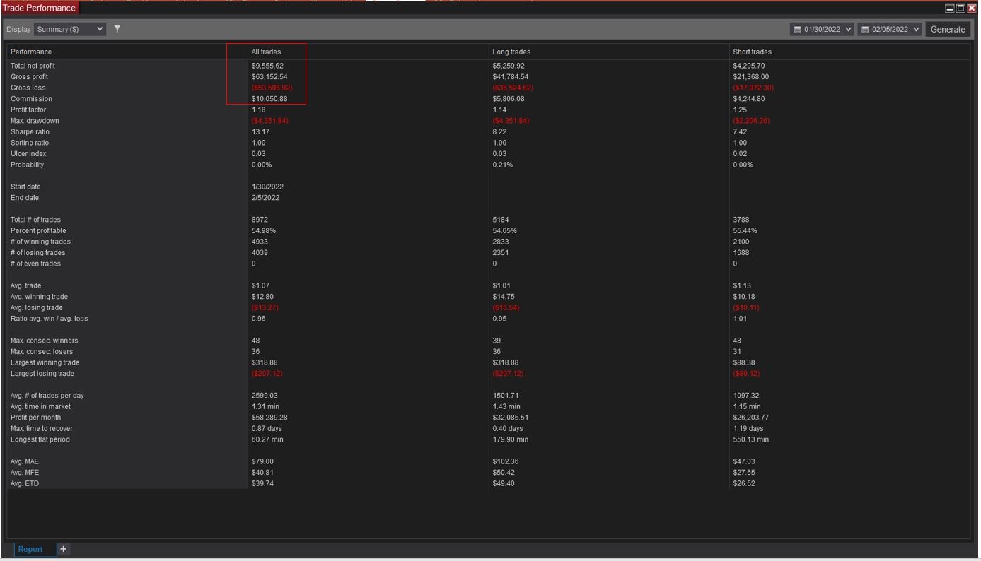 can you please confirm that Commission is summed under the "Gross Loss" line on the summary report of Trade Performance. On the snap in the red box I see my commission is ~10K, but it is not clear that this is included as a loss under "Gross Loss". My account in the control panel show the net profit $9,555 and the commission shown on the summary, so I think I have it right when I assume the commissions are included in Gross Loss - just looking to verify, thank you!Tags: None
