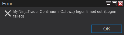 Can't connect to CQG Continuum: Gateway logon timed out. (Logon failed)