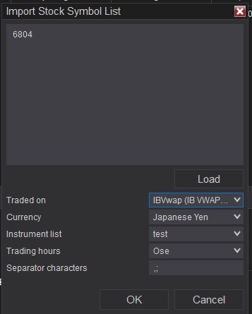 When I do the settings from the Import Stock List window, the 6804symbol chart is displayed at different exchanges, and when I change the Traded on setting from IBVwap to Tse, the 6804symbol chart is not displayed.
