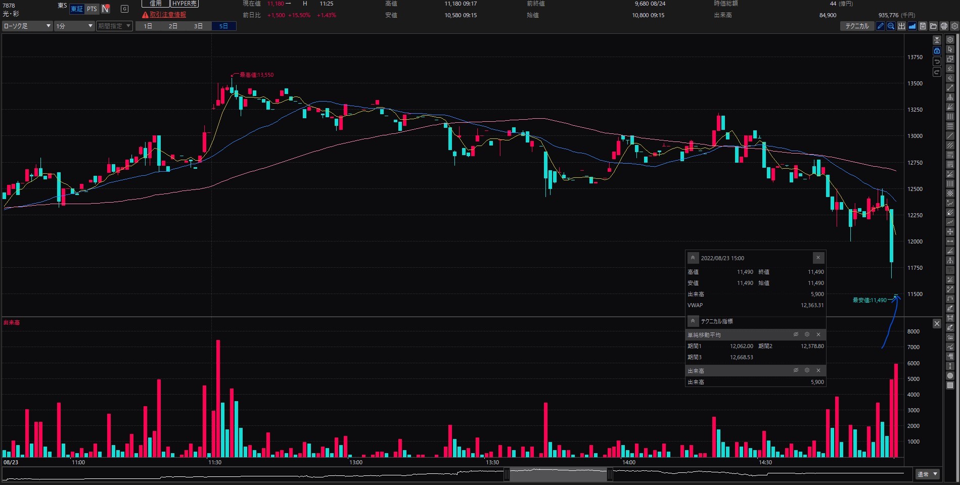 The chart interval is 1 minute.