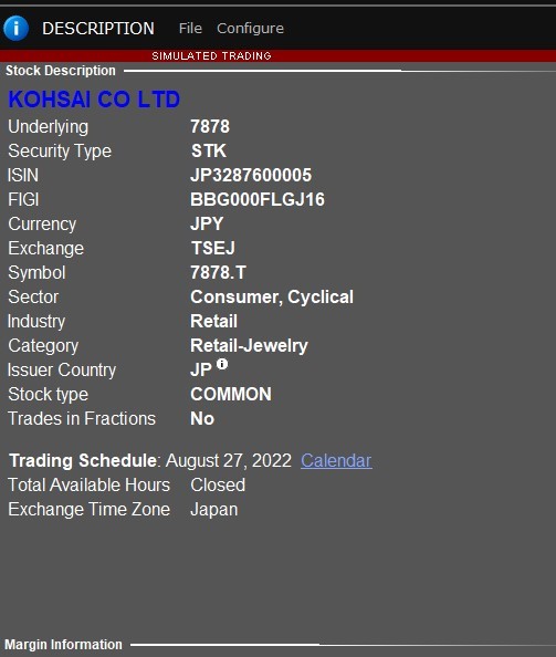 We have selected the Tokyo Stock Exchange (TSEJ) as our instrument.