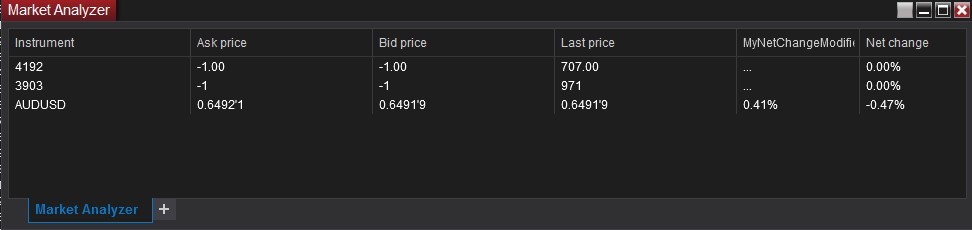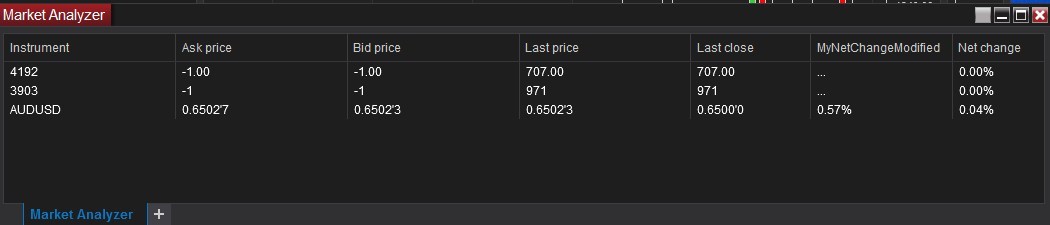 Again, I had not yet added the plot, so I added the plot to line 44 in the NinjaScript file and ran it, but there seems to be no change in the market analyzer.