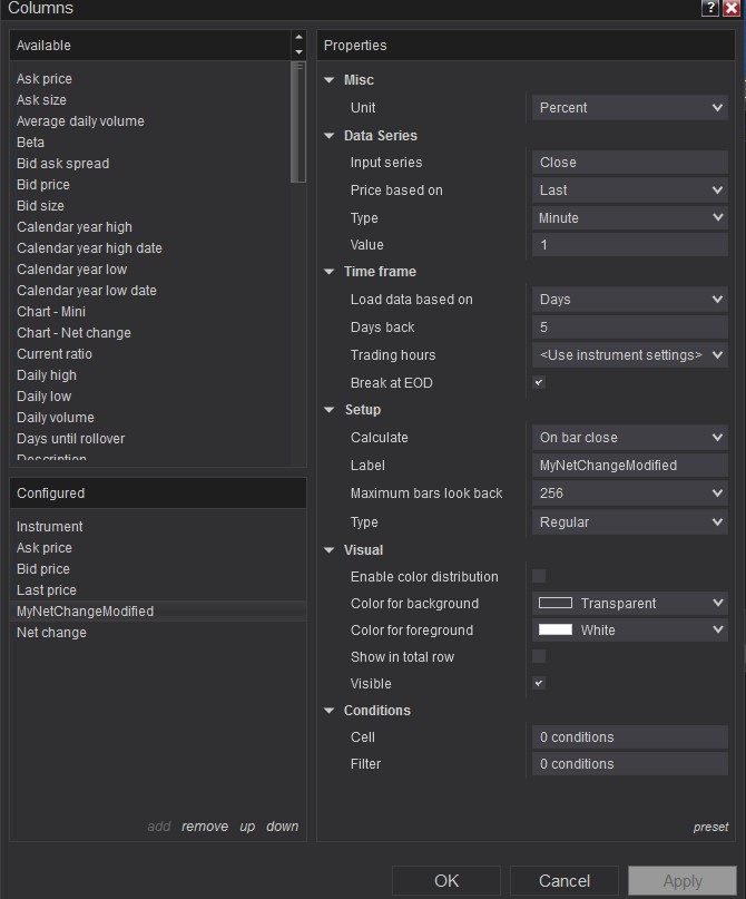You can also contact a professional NinjaScript Consultant who would be eager to create or modify this script at your request or assist you with your script. The NinjaTrader Ecosystem has affiliate contacts who provide educational as well as consulting services. Please let me know if you would like our NinjaTrader Ecosystem team follow up with you with a list of affiliate consultants who would be happy to create this script or any others at your request or provide one on one educational services.Chelsea B.NinjaTrader Customer Service